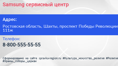 Samsung, сервисный центр по адресу Ростовская область, Шахты, проспект Победы Революции, 111ж в дальнейшем Организация, размещена в следующих категориях: