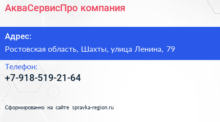АкваСервисПро, компания по адресу Ростовская область, Шахты, улица Ленина, 79 в дальнейшем Организация, размещена в следующих категориях: