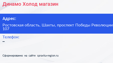 Динамо Холод, магазин по адресу Ростовская область, Шахты, проспект Победы Революции, 107 в дальнейшем Организация, размещена в следующих категориях: