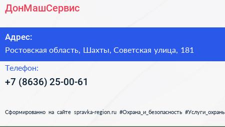 ДонМашСервис по адресу Ростовская область, Шахты, Советская улица, 181 в дальнейшем Организация, размещена в следующих категориях: