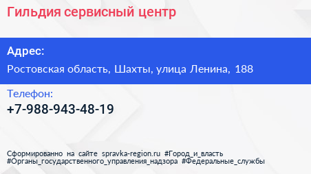 Гильдия, сервисный центр по адресу Ростовская область, Шахты, улица Ленина, 188 в дальнейшем Организация, размещена в следующих категориях: