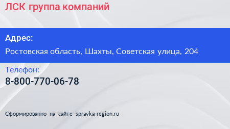 ЛСК, группа компаний по адресу Ростовская область, Шахты, Советская улица, 204 в дальнейшем Организация, размещена в следующих категориях: