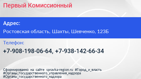 Первый Комиссионный по адресу Ростовская область, Шахты, Шевченко, 123Б в дальнейшем Организация, размещена в следующих категориях: