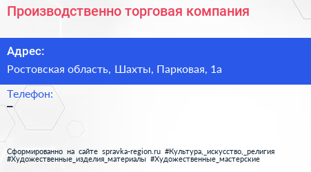Производственно-торговая компания по адресу Ростовская область, Шахты, Парковая, 1а в дальнейшем Организация, размещена в следующих категориях: