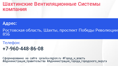 Шахтинские Вентиляционные Системы, компания по адресу Ростовская область, Шахты, проспект Победы Революции, 85Б в дальнейшем Организация, размещена в следующих категориях: