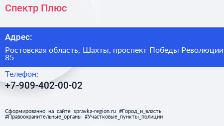 Спектр Плюс по адресу Ростовская область, Шахты, проспект Победы Революции, 85 в дальнейшем Организация, размещена в следующих категориях: