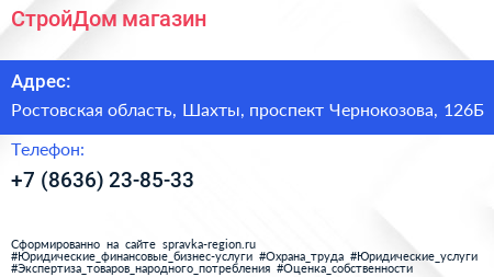 СтройДом, магазин по адресу Ростовская область, Шахты, проспект Чернокозова, 126Б в дальнейшем Организация, размещена в следующих категориях: