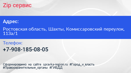 Zip-сервис по адресу Ростовская область, Шахты, Комиссаровский переулок, 113а/1 в дальнейшем Организация, размещена в следующих категориях:
