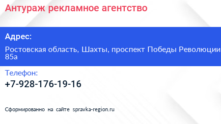 Антураж, рекламное агентство по адресу Ростовская область, Шахты, проспект Победы Революции, 85а в дальнейшем Организация, размещена в следующих категориях: