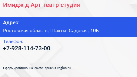 Имидж д`Арт, театр-студия по адресу Ростовская область, Шахты, Садовая, 10Б в дальнейшем Организация, размещена в следующих категориях: