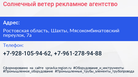 Солнечный ветер, рекламное агентство по адресу Ростовская область, Шахты, Мясокомбинатовский переулок, 7а в дальнейшем Организация, размещена в следующих категориях: