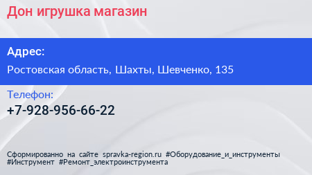 Дон игрушка, магазин по адресу Ростовская область, Шахты, Шевченко, 135 в дальнейшем Организация, размещена в следующих категориях: