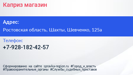 Каприз, магазин по адресу Ростовская область, Шахты, Шевченко, 125а в дальнейшем Организация, размещена в следующих категориях: