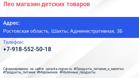 Лео, магазин детских товаров по адресу Ростовская область, Шахты, Административная, 3Б в дальнейшем Организация, размещена в следующих категориях: