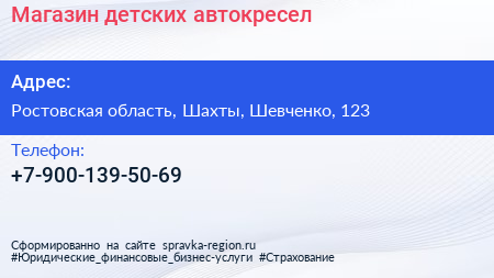 Магазин детских автокресел по адресу Ростовская область, Шахты, Шевченко, 123 в дальнейшем Организация, размещена в следующих категориях: