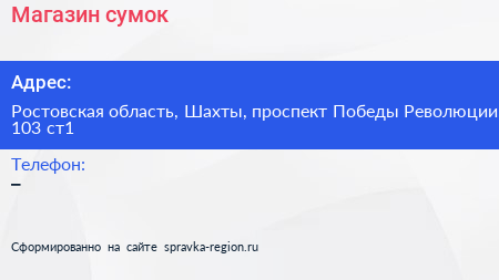 Магазин сумок по адресу Ростовская область, Шахты, проспект Победы Революции, 103 ст1 в дальнейшем Организация, размещена в следующих категориях: