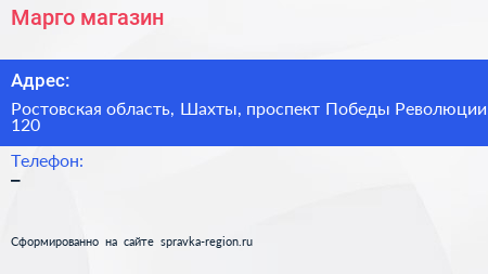 Марго, магазин по адресу Ростовская область, Шахты, проспект Победы Революции, 120 в дальнейшем Организация, размещена в следующих категориях: