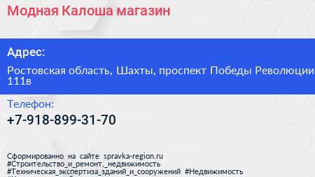 Модная Калоша, магазин по адресу Ростовская область, Шахты, проспект Победы Революции, 111в в дальнейшем Организация, размещена в следующих категориях: