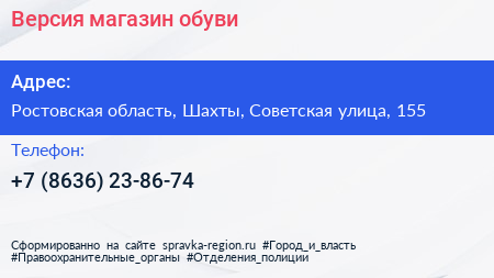 Версия, магазин обуви по адресу Ростовская область, Шахты, Советская улица, 155 в дальнейшем Организация, размещена в следующих категориях: