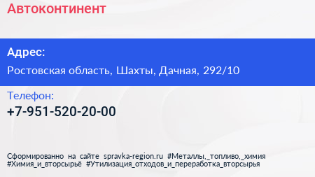 Автоконтинент по адресу Ростовская область, Шахты, Дачная, 292/10 в дальнейшем Организация, размещена в следующих категориях: