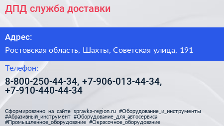 ДПД, служба доставки по адресу Ростовская область, Шахты, Советская улица, 191 в дальнейшем Организация, размещена в следующих категориях: