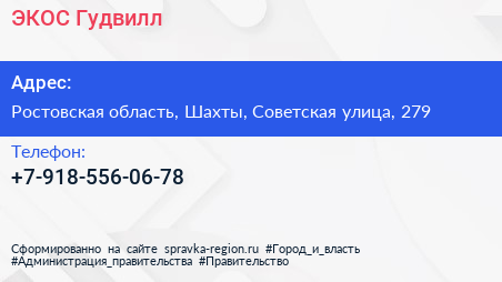 ЭКОС-Гудвилл по адресу Ростовская область, Шахты, Советская улица, 279 в дальнейшем Организация, размещена в следующих категориях: