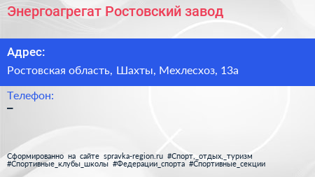 Энергоагрегат, Ростовский завод по адресу Ростовская область, Шахты, Мехлесхоз, 13а в дальнейшем Организация, размещена в следующих категориях: