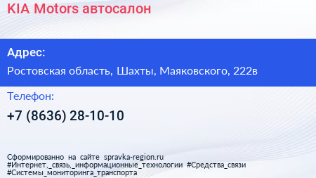 KIA Motors, автосалон по адресу Ростовская область, Шахты, Маяковского, 222в в дальнейшем Организация, размещена в следующих категориях: