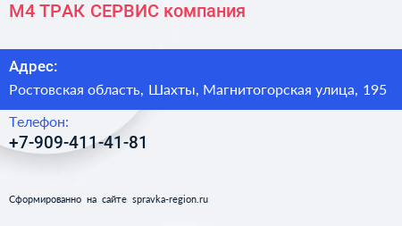 М4 ТРАК СЕРВИС, компания по адресу Ростовская область, Шахты, Магнитогорская улица, 195 в дальнейшем Организация, размещена в следующих категориях: