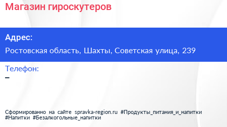 Магазин гироскутеров по адресу Ростовская область, Шахты, Советская улица, 239 в дальнейшем Организация, размещена в следующих категориях:
