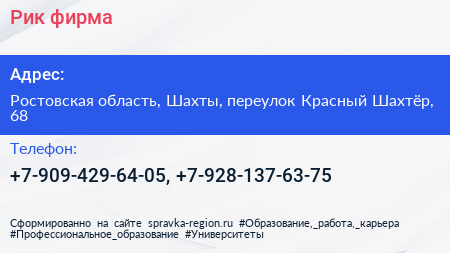 Рик, фирма по адресу Ростовская область, Шахты, переулок Красный Шахтёр, 68 в дальнейшем Организация, размещена в следующих категориях: