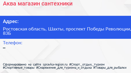 Аква, магазин сантехники по адресу Ростовская область, Шахты, проспект Победы Революции, 83Б в дальнейшем Организация, размещена в следующих категориях:
