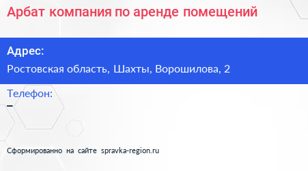 Арбат, компания по аренде помещений по адресу Ростовская область, Шахты, Ворошилова, 2 в дальнейшем Организация, размещена в следующих категориях: