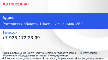 Автосервис по адресу Ростовская область, Шахты, Ильюшина, 26/1 в дальнейшем Организация, размещена в следующих категориях: