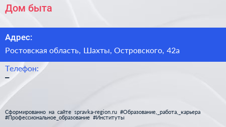 Дом быта по адресу Ростовская область, Шахты, Островского, 42а в дальнейшем Организация, размещена в следующих категориях: