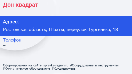 Дон-квадрат по адресу Ростовская область, Шахты, переулок Тургенева, 18 в дальнейшем Организация, размещена в следующих категориях: