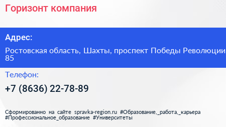 Горизонт, компания по адресу Ростовская область, Шахты, проспект Победы Революции, 85 в дальнейшем Организация, размещена в следующих категориях: