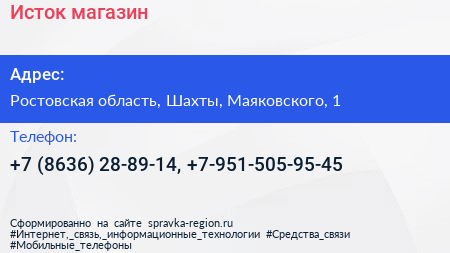 Исток, магазин по адресу Ростовская область, Шахты, Маяковского, 1 в дальнейшем Организация, размещена в следующих категориях:
