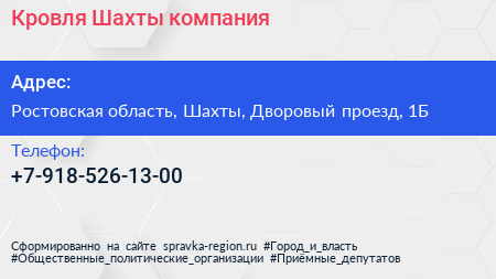 Кровля Шахты, компания по адресу Ростовская область, Шахты, Дворовый проезд, 1Б в дальнейшем Организация, размещена в следующих категориях: