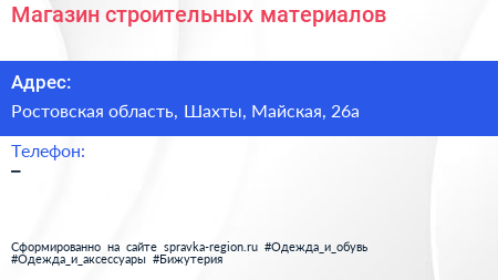 Магазин строительных материалов по адресу Ростовская область, Шахты, Майская, 26а в дальнейшем Организация, размещена в следующих категориях: