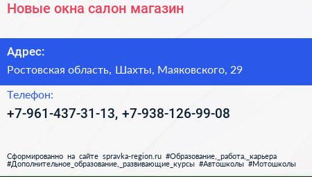 Новые окна, салон-магазин по адресу Ростовская область, Шахты, Маяковского, 29 в дальнейшем Организация, размещена в следующих категориях:
