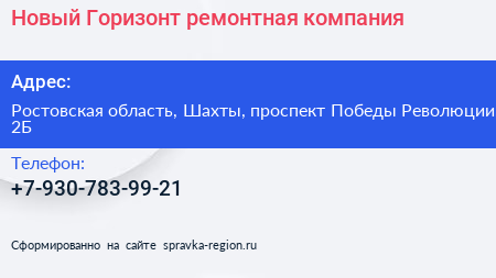 Новый Горизонт, ремонтная компания по адресу Ростовская область, Шахты, проспект Победы Революции, 2Б в дальнейшем Организация, размещена в следующих категориях: