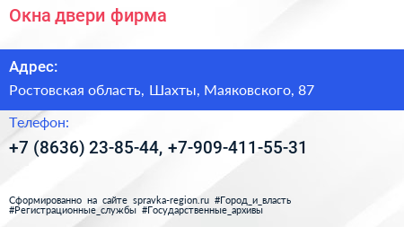 Окна-двери, фирма по адресу Ростовская область, Шахты, Маяковского, 87 в дальнейшем Организация, размещена в следующих категориях: