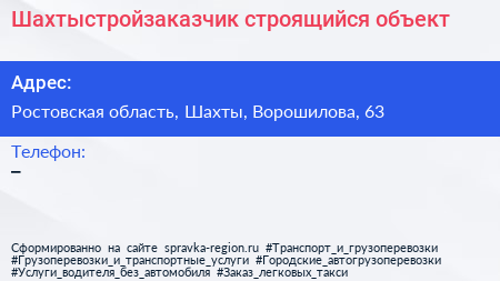 Шахтыстройзаказчик, строящийся объект по адресу Ростовская область, Шахты, Ворошилова, 63 в дальнейшем Организация, размещена в следующих категориях: