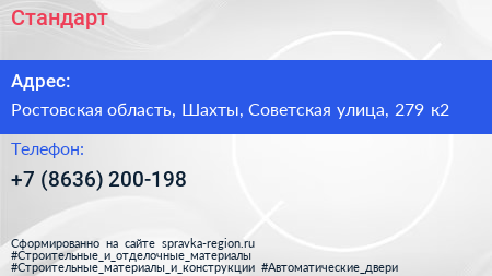 Стандарт по адресу Ростовская область, Шахты, Советская улица, 279 к2 в дальнейшем Организация, размещена в следующих категориях:
