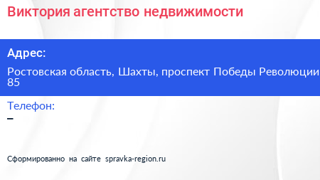 Виктория, агентство недвижимости по адресу Ростовская область, Шахты, проспект Победы Революции, 85 в дальнейшем Организация, размещена в следующих категориях: