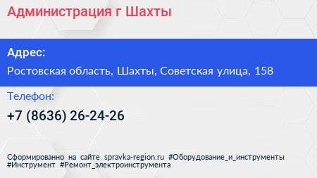 Администрация г. Шахты по адресу Ростовская область, Шахты, Советская улица, 158 в дальнейшем Организация, размещена в следующих категориях: