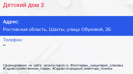 Детский дом №3 по адресу Ростовская область, Шахты, улица Обуховой, 2Б в дальнейшем Организация, размещена в следующих категориях: