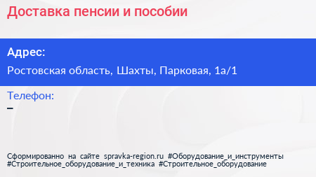 Доставка пенсии и пособии по адресу Ростовская область, Шахты, Парковая, 1а/1 в дальнейшем Организация, размещена в следующих категориях: