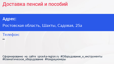 Доставка пенсий и пособий по адресу Ростовская область, Шахты, Садовая, 25а в дальнейшем Организация, размещена в следующих категориях: